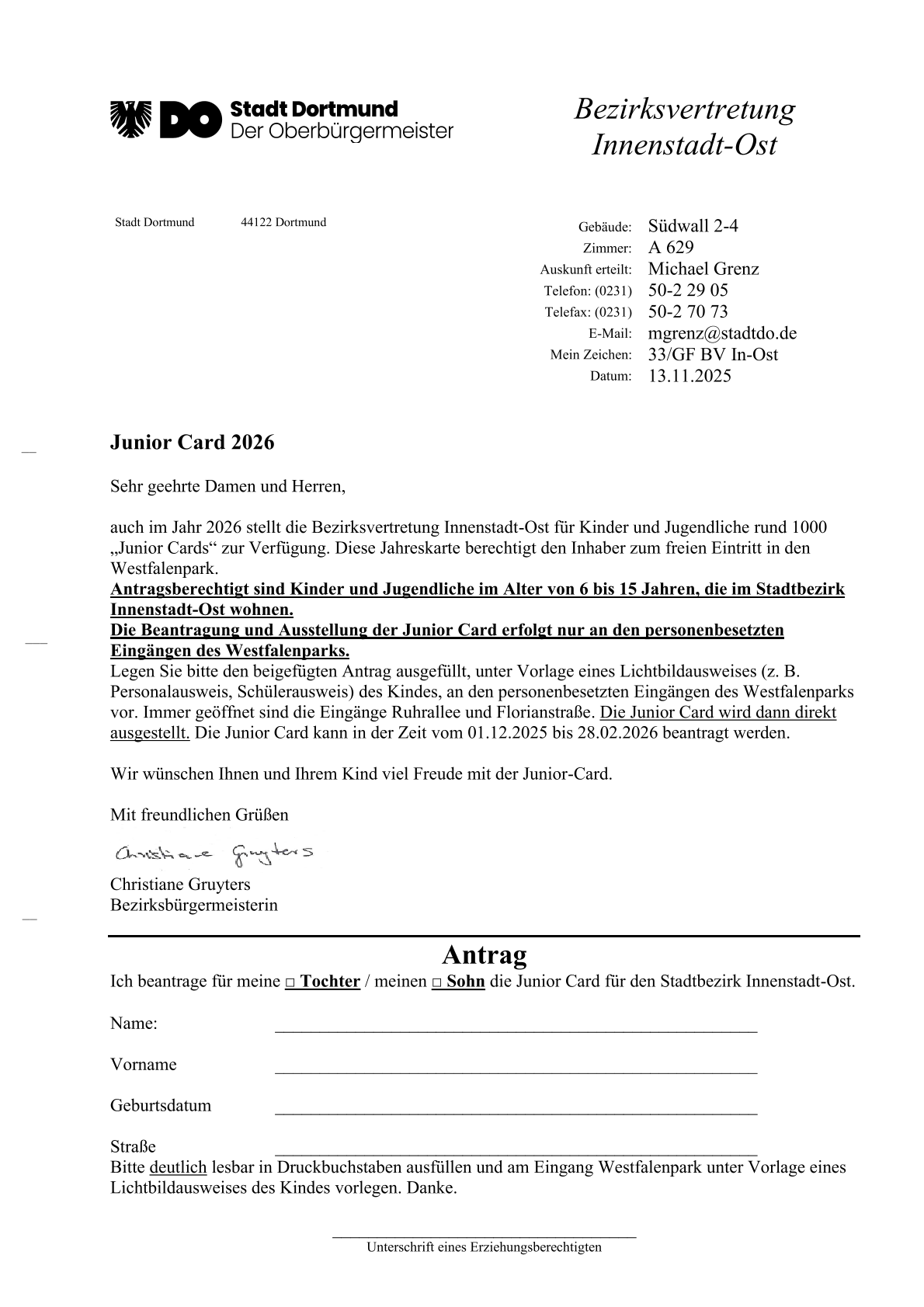 Dank der Unterstützung der Bezirksvertretung Stadtkrone Ost können Kinder und Jugendliche zwischen 6 und 17 Jahren mit der Junior-Card den Westfalenpark Dortmund das ganze Jahr über kostenfrei besuchen.